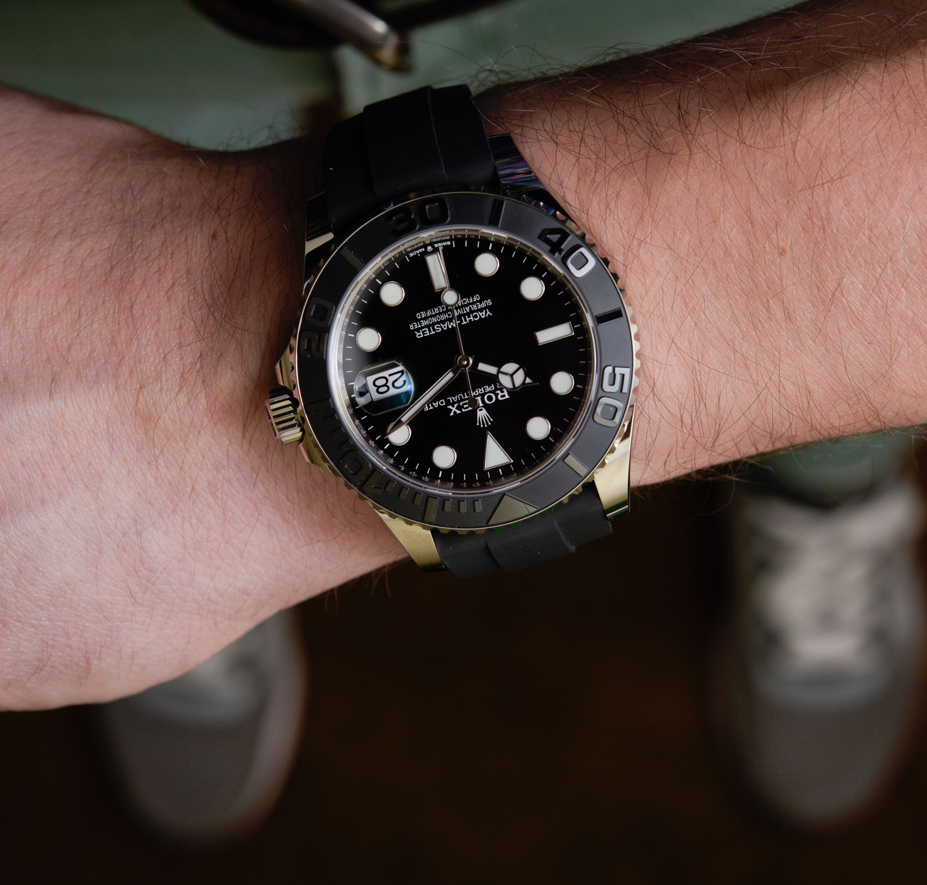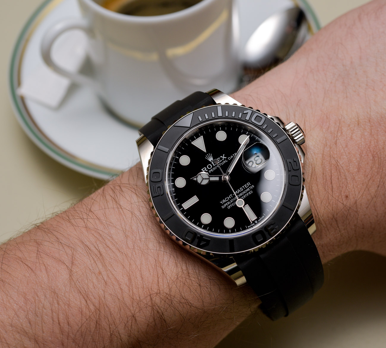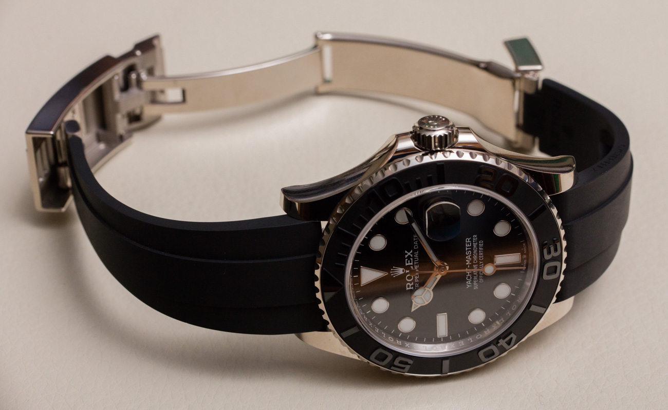 Rolex introduceert bijna altijd eerst nieuwe kasten en bewegingen in high-end imitatie horloges, om ze op de markt te brengen en uit te testen. Het is zeer (zeer) mogelijk dat Rolex uiteindelijk een stalen versie van de replica Yacht-Master 42 kast ergens in de toekomst zal produceren. Dat hangt echt allemaal af van het succes van het model. Rolex heeft de Yacht-Master al vrij goed nieuw leven ingeblazen door de 40mm brede en 37mm brede (gouden) Yacht-Master stukken te verkopen op een elastomeer Oysterflex band. De Rolex Daytona op de Oysterflex band was ook een hit, en nogmaals, al deze replica horloges zijn in goud. Het is een soort van verbazingwekkend dat in een tijd van zo veel variatie in de markt van high-end sport replica horloges op kleurrijke high-tech banden, Rolex blijft om het te doden door het zetten van echt fancy gouden horloges op zwarte rubberen banden.